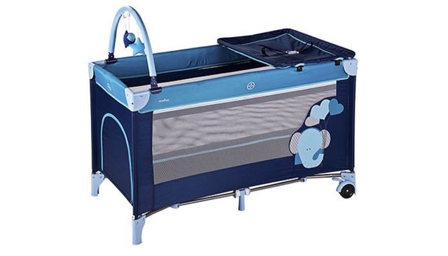 Cuna de viaje con cambiador de la marca Olmitos en color azul. Se encuentra en buen estado.