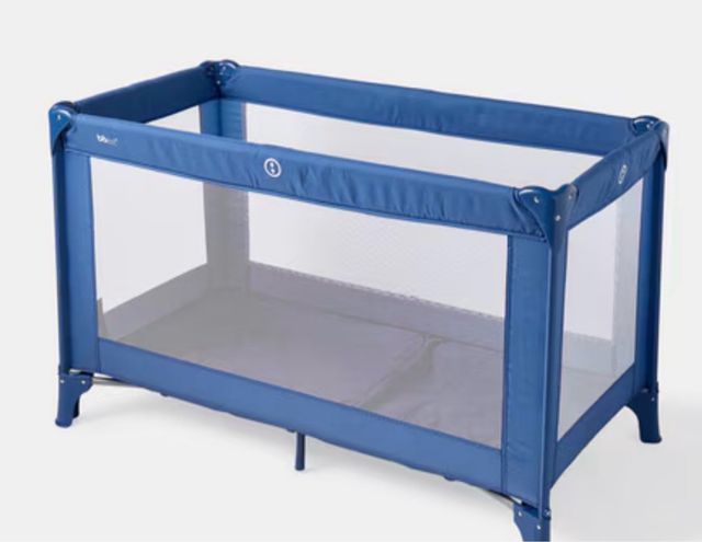 Detalles del productoCuna de viaje plegable en color azul, ideal para transportar.