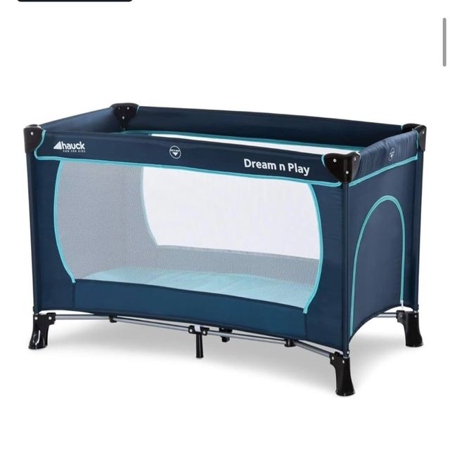 Hauck modelo Dream n Play en color azul marino con detalles en turquesa. Es plegable y fácil de transportar.