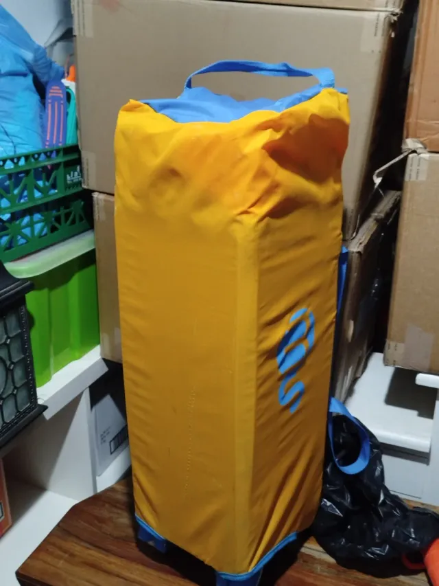 Cuna de viaje portátil y fácil de transportar. Ideal para llevar a todas partes. - Diseño plegable. - Color amarillo y azul. - Incluye asas para su transporte.