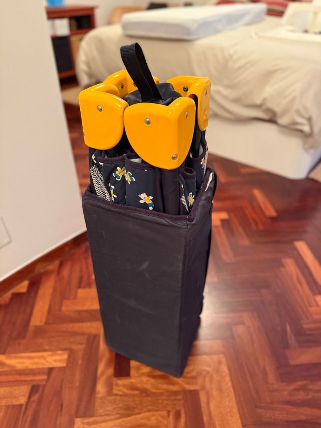 Cuna de viaje plegable, fácil de transportar y montar. Incluye colchón.