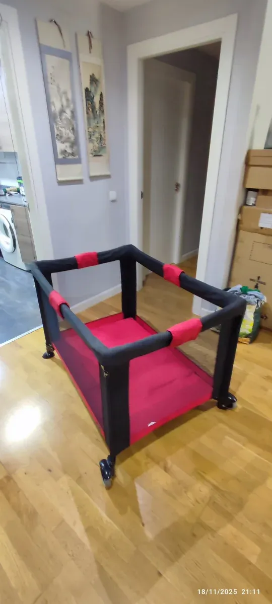 Detalles del productoCuna de viaje en color negro, fácil de transportar y guardar. Altura interior 63 cm. Con ruedas en un lado.