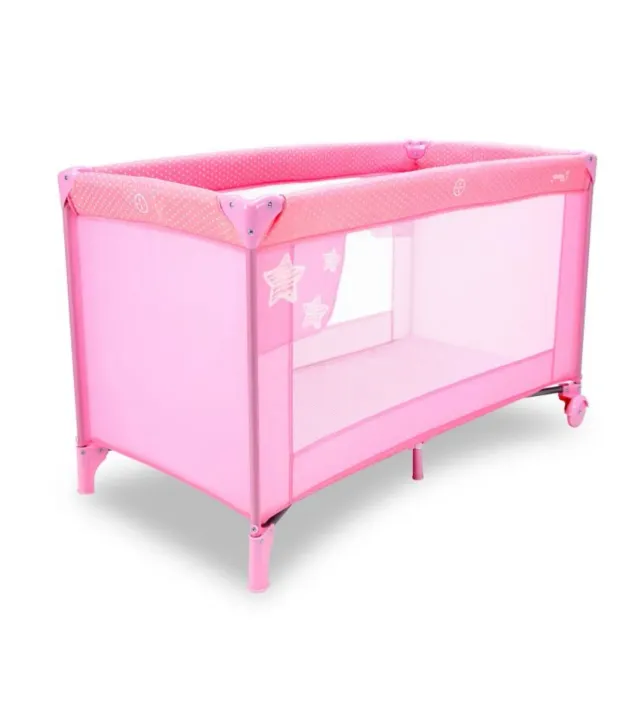 Detalles del productoCuna de viaje en color rosa, ideal para bebés. Incluye colchón.