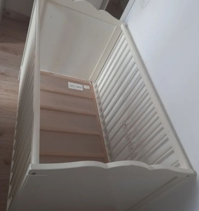 Cuna de dos niveles de Ikea en color blanco. Ideal para el descanso del bebé. - Estructura de madera. - Diseño de barrotes blancos sencillo y elegante.Se entrega desmontada.