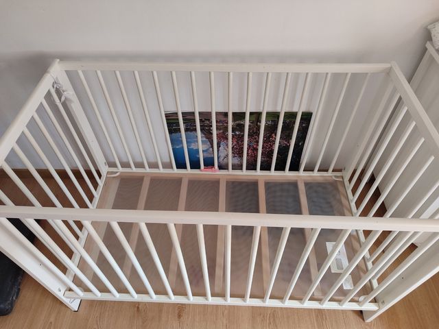 Detalles del productoCuna de bebé de la marca IKEA, en color blanco. Ideal para habitaciones infantiles.