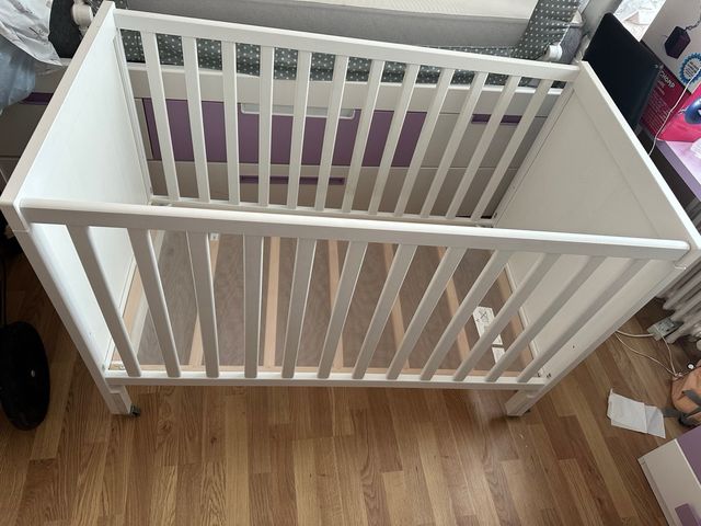 Detalles del productoCuna de bebé de Ikea, en color blanco, con ruedas para facilitar su movilidad. Está en buen estado.