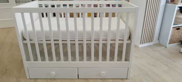 Detalles del productoCuna evolutiva de Ikea modelo Stuva, en color blanco. Perfecta para adaptarse al crecimiento del bebé.