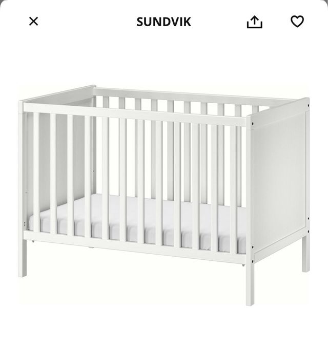 Detalles del productoSe vende cuna SUNDVIK de IKEA en color blanco, en buen estado. Incluye colchón JÄTTETRÖTT y protector.