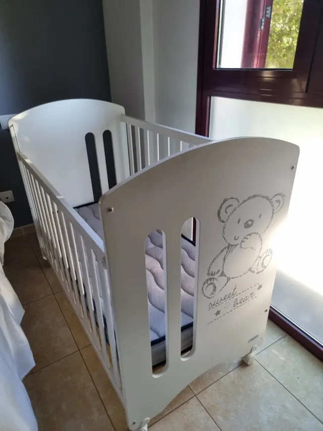 Detalles del productoCuna de la marca Micuna en color blanco, con un tierno diseño de osito.