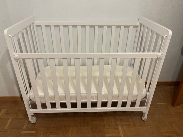 Detalles del productoCuna marca Micuna modelo Nordika en perfecto estado. De madera color blanca. Incluye colchón. Tanto la cuna como el colchón están muy bien cuidados. El colchón siempre ha estado protegido con dos sabanas por cada lado más el protector impermeable. Por lo que está impecable y sin ninguna mancha. La cuna tiene 5 posiciones de colchón y una barrera lateral se sube y se baja. Tiene 4 ruedas, 2 de ellas con freno. Se entrega limpia y en su embalaje. Regalo de protector y varias sabanas de verano e invierno.
