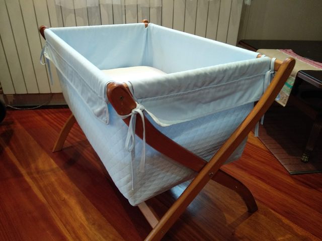 Cuna Moisés plegable y la vendo con doble colchón. (80*50cm) La patas de madera y tiene ruedas opcionales (no salen en la foto) Ideal como segunda cuna para la sala.