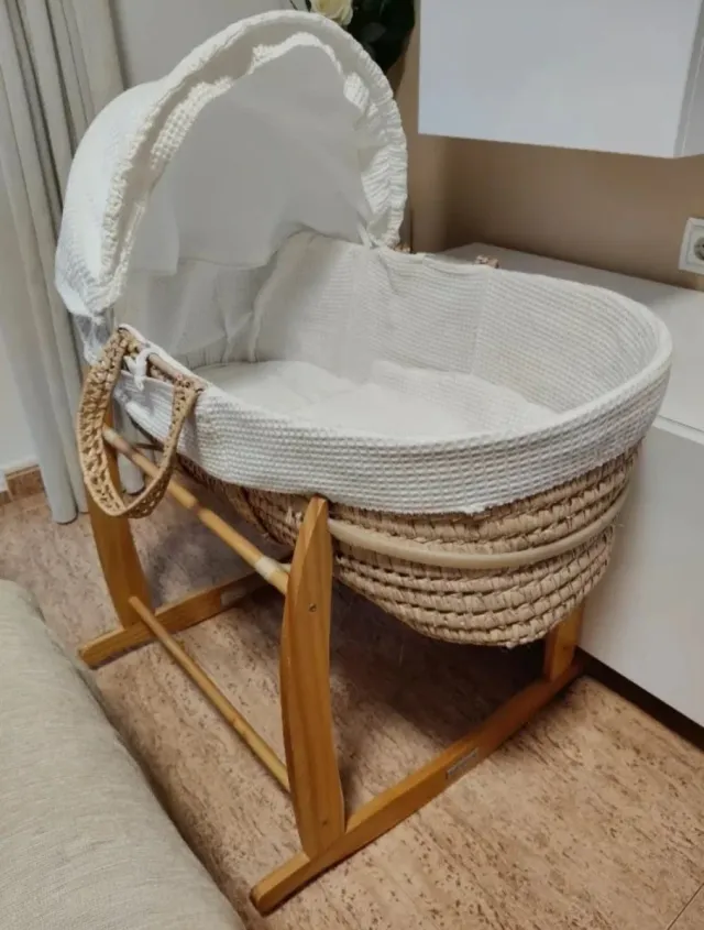 Cuna moisés mimbre con balancín ( Apenas usada )