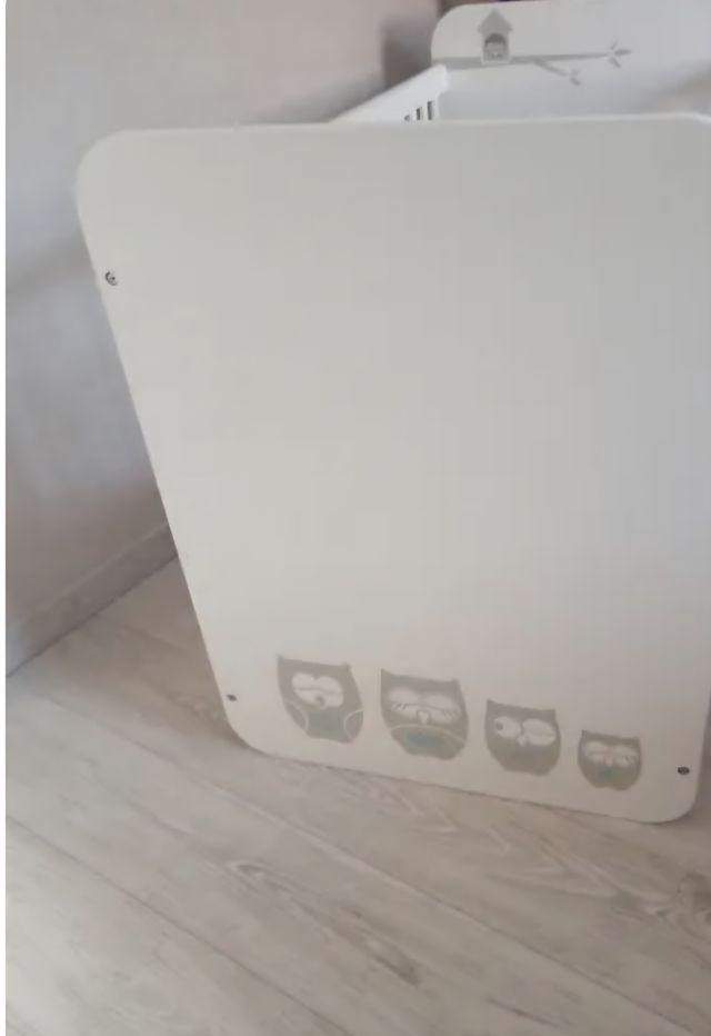 Cuna infantil con un bonito diseño de búhos. - Estructura de madera. - Dos alturas regulables. Medidas: 1,20x 60