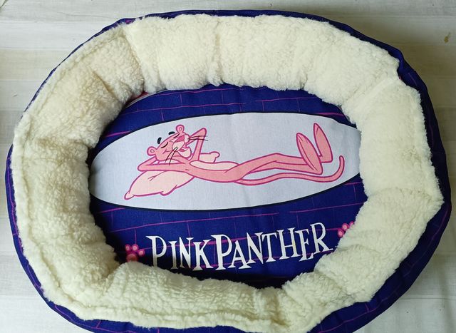 Cuna suave y cómoda para mascotas con diseño de Pink Panther. - Interior de peluche. - Estampado de Pink Panther. - Borde acolchado.