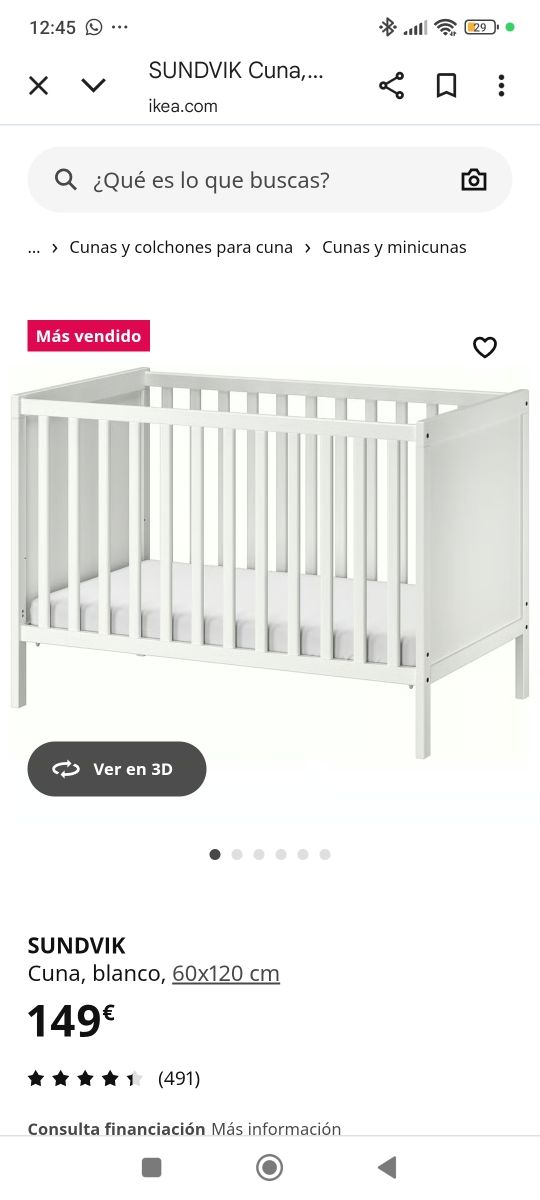 Detalles del productoCuna modelo SUNDVIK de IKEA en color blanco.