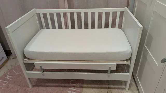 Detalles del productoCuna blanca modelo Sundvik, versátil y adaptable.
