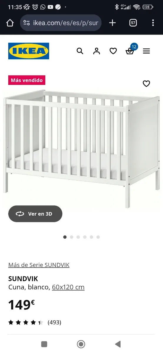 Cuna SUNDVIK IKEA Blanca 60x120 cm