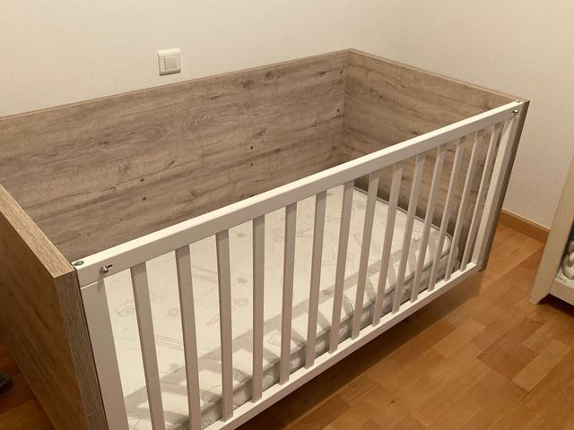 Cuna Tac de Muebles Ros, 140x70. La barrera protectora se ajusta en dos alturas.