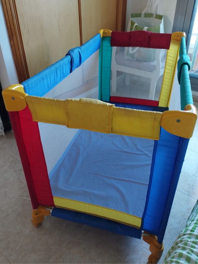 cuna de viaje con un pequeño desperfecto pero que no afecta al funcionamiento