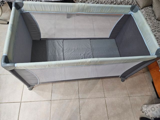 Cuna parque de viaje. Con colchón incluido. Nueva. Color azul y gris. Plegado fácil y no pesa nada.