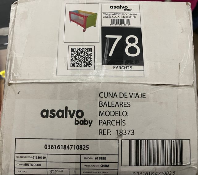 Cuna de viaje de la marca Asalvo nueva, com colores del parchís. Está sin sacar de la caja.