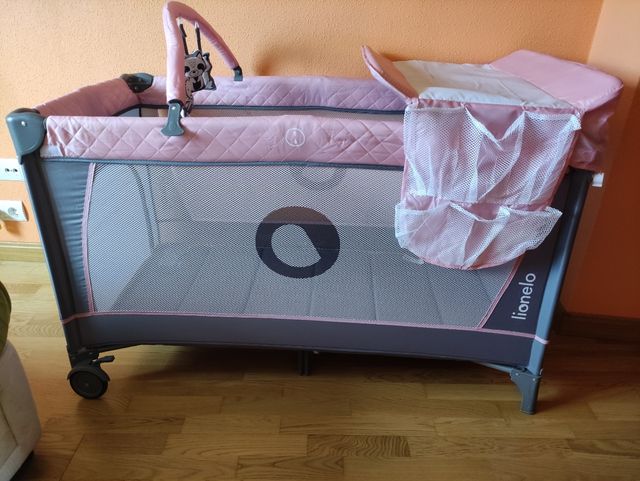 Cuna de viaje de la marca Lionelo. Tiene opción a dos alturas,con cambiador y arco de juegos En perfecto estado MUY POCO USADA Medidas: 60X120cm