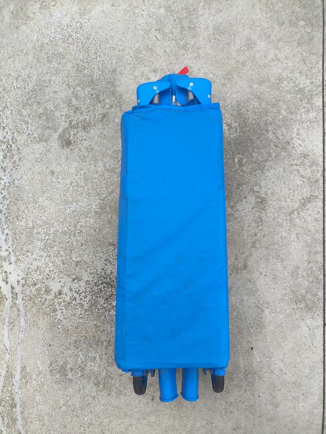Cuna de viaje Asalvo baby en buen estado. Ideal para viajes o para tener una cama extra en casa. - Plegable y fácil de transportar. - Incluye colchón. - Color azul.