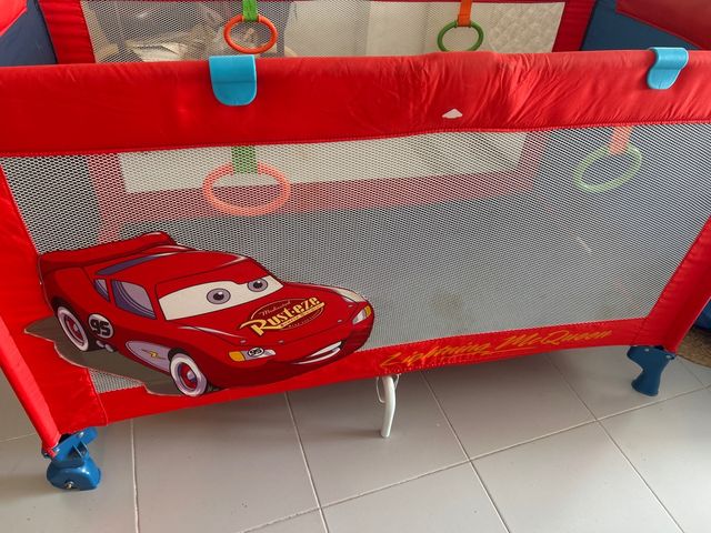 Detalles del productoPreciosa cuna de viaje de Cars de Disney Pixar, ideal para viajes o para tener una cama extra en casa. Está en buen estado, aunque tiene algunas marcas de uso.