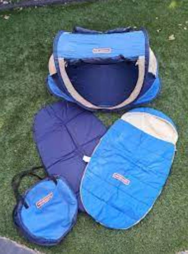Detalles del productoCuna de viaje Nikidom para niños. tipo tienda de campaña. con colchón auto hinchable. se plega muy fácilmente y se guarda en una bolsa de unos 44 cm. en perfecto estado. solo pocos usos. se puede usar también en jardín. filtro UV. con saco de dormir lavable Medidas del producto