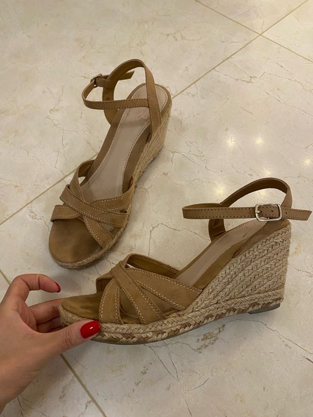 Cuñas beige paja talla 41 tacones