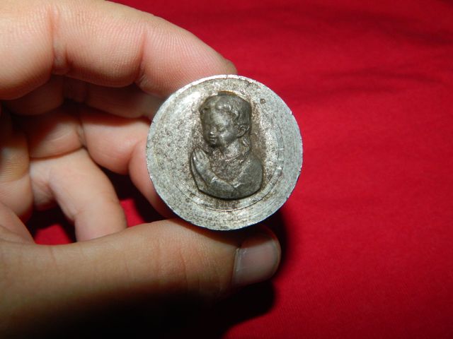 Detalles del productoTroquel de acero con la imagen de una niña rezando. Ideal para trabajos de artesanía o coleccionismo religioso. cuño antiguo de acero para hacer medallas en positivo 148,9 gramos.