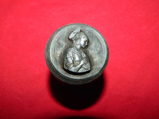 Detalles del productoPrecioso cuño troquel con la imagen de la Virgen María. troquel de acero en positivo para hacer medallas religiosas.