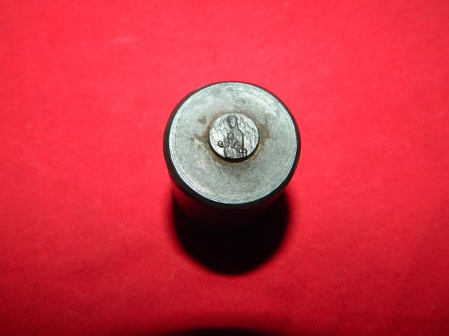 Detalles del productoCuño o troquel con la imagen de la Virgen de Montserrat y el niño Jeus, Ideal para coleccionistas o amantes de la simbología religiosa. Para poder hacer medallas, el cuño es de acero y esta en positivo, peso aproximado 129,2 gramos, esta imagen de este cuño es pequeñita.