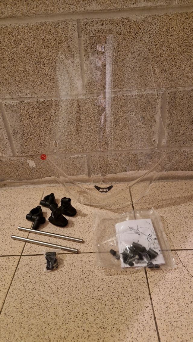 Detalles del productoCúpula Givi transparente para moto, prácticamente nueva. Incluye todos los herrajes para su montaje.