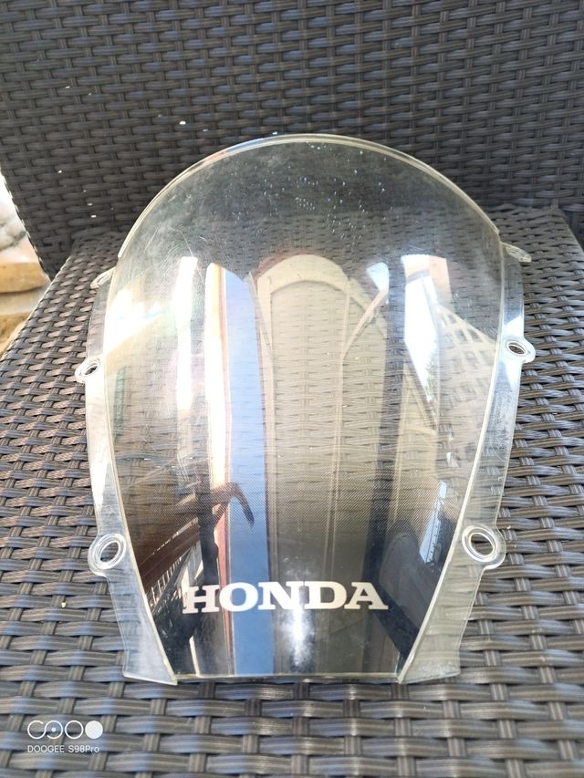 Detalles del productoCúpula transparente para moto Honda. Está en buen estado, aunque presenta algunas marcas superficiales.