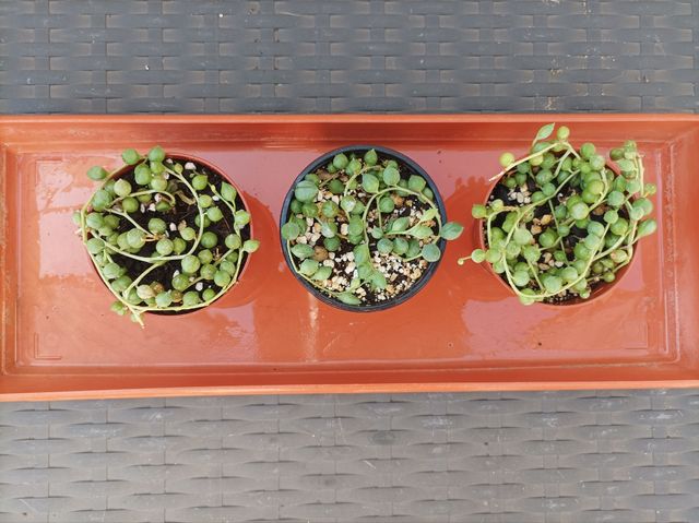 Detalles del productoPlanta suculenta Curio rowleyanus (antes Senecio rowleyanus) también conocida como "rosario" en macetas de 8,5 y 9cm. de diámetro. Las plantas que se venden son las de las fotos. Mientras haya existencias, puedes elegir la que más te guste.