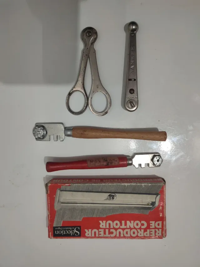 - Cortador de vidrio con mango de madera.