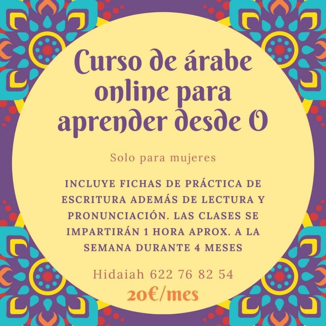 Curso de árabe online con profesora española. Aprende el abecedario facilmente escribiendo y leyendo. Solo para grupos de mujeres. Pregunta sin compromiso.