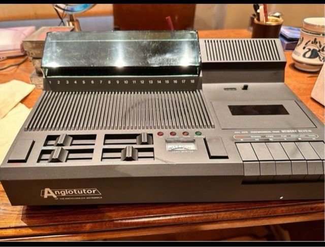 Detalles del productoCurso de inglés Anglotutor, consola de casetes de audio con entrada para auriculares y micrófono + varios controles para aprender la pronunciación. 18 cintas de audio, 8 volúmenes.English language video.