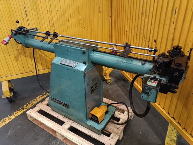 Detalles del producto(12059) CURVADORA DE TUBOS MARGUA CEM25 con alma, capacidad Ø25mm, y longitud 1500mm, motor 2Hp, con matrices para tubo de 16mm, radio min interior 25mm, radio máx. al centro 115mm, dimensiones 2 x 0,60 x 1m, peso 245kg. USADA.