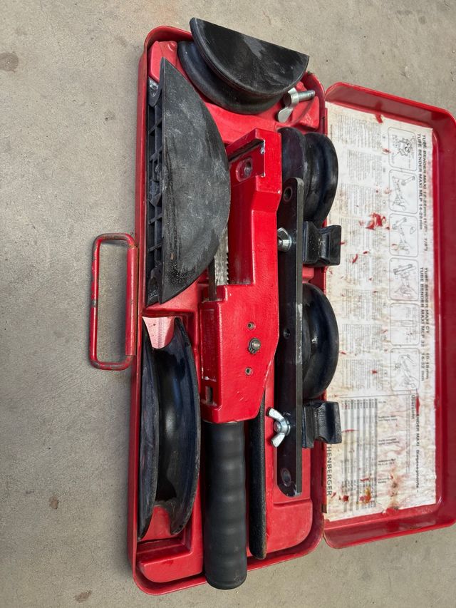 Detalles del productoHerramienta para curvar tubos de cobre, aluminio y otros materiales. Incluye diferentes moldes para distintos diámetros.
