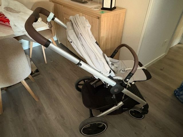 Cochecito Cybex para bebé, en color beige. Está en buen estado y listo para usar. - Incluye capazo. - Chasis ligero de aluminio. - Tejidos suaves y resistentes.