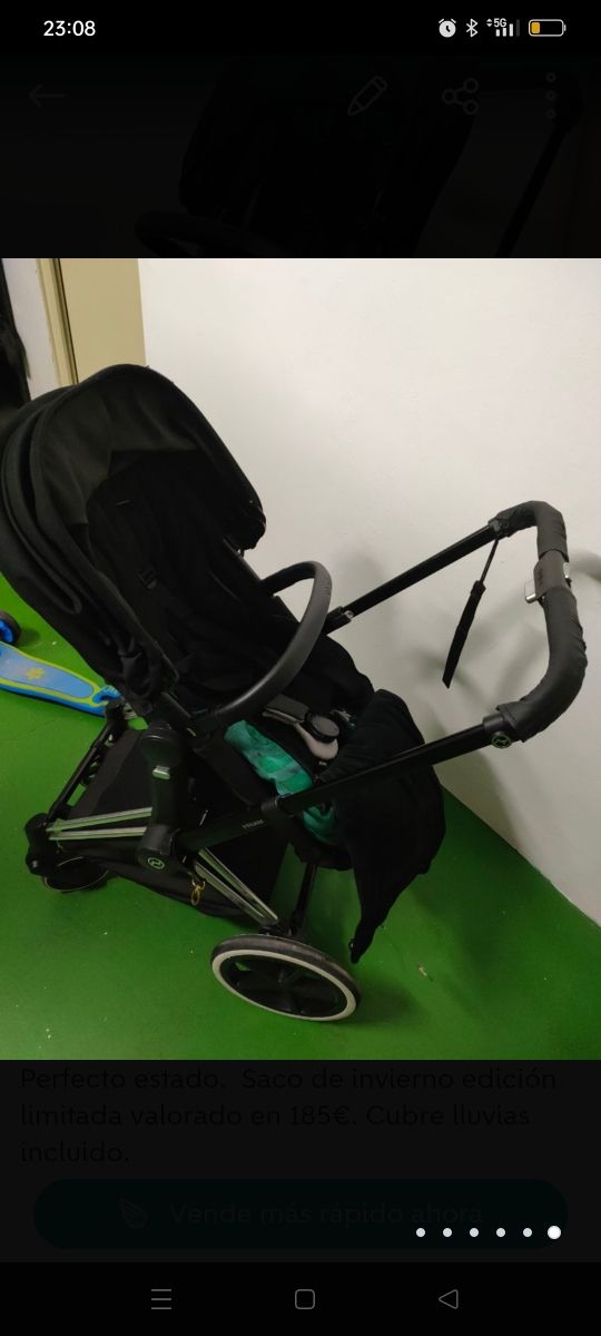 Detalles del productoCybex Priam capazo y silla de paseo. El mismo chasis sirve para las dos cosas. Perfecto estado. Saco de invierno edición limitada valorado en 185€. Cubre lluvias incluido. La silla de paseo tiene la altura perfecta para servir como trona en los restaurantes.