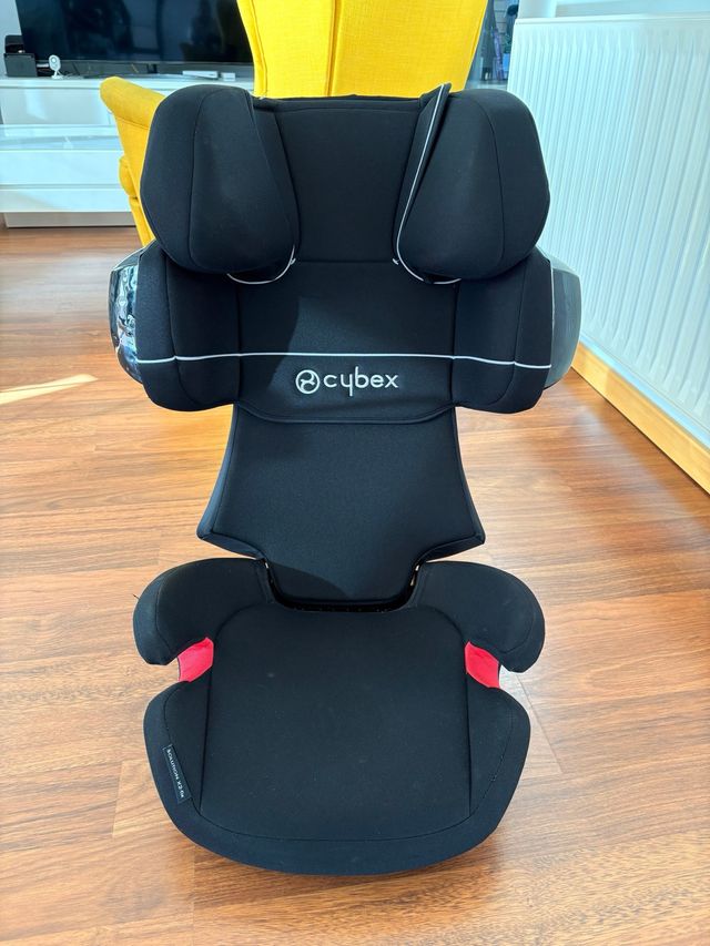 Sistema de retención infantil Cybex para niños. - Diseñado para los grupos II y III. - Color negro con detalles blancos y rojos. - Reposacabezas ajustable.