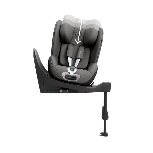 Silla de coche para niños, adaptable a medida que crecen. - Diseño en color gris oscuro. - Sistema de arnés de seguridad. - Base giratoria para facilitar el acceso.