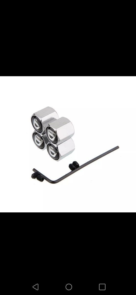 Detalles del productoBuenas, vendó tapones para las válvulas de los neumáticos con insignia de Dacia con prisioneros antirrobo por ( 5 euros el set de 4 tapones, plateado o negro) y con llavero qué sirve también para apretar los tapones por ( 9 euros el set de 4 tapones y llavero, en negro )