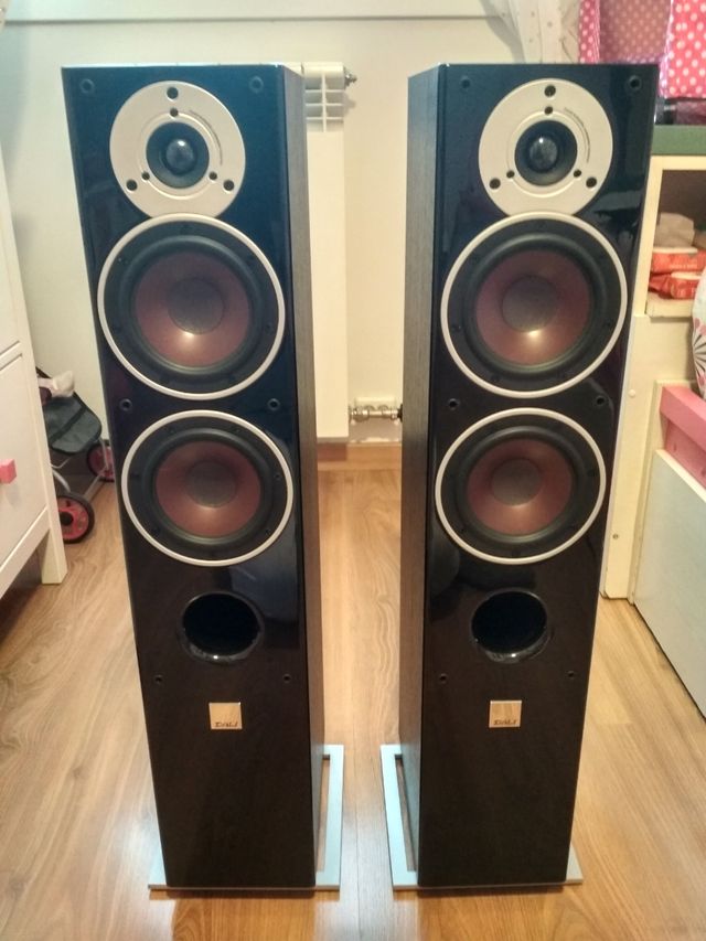 Detalles del productoVendo pareja de altavoces de suelo en muy buen estado. Albergan dos drivers de 5,25" realizados en fibra de madera y un tweeter de seda de 25 mm, y salida Base Reflex delantera.