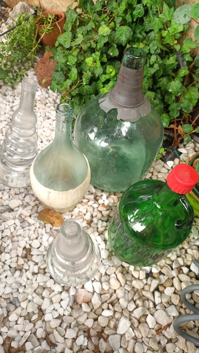 También se vende por separado las botellas en forma cilíndrica seis euros cada una 6 euros la verde y la italiana y diez euros la damajuana grande. Si te llevas todas te regalo una de las garrafas pequeñas.