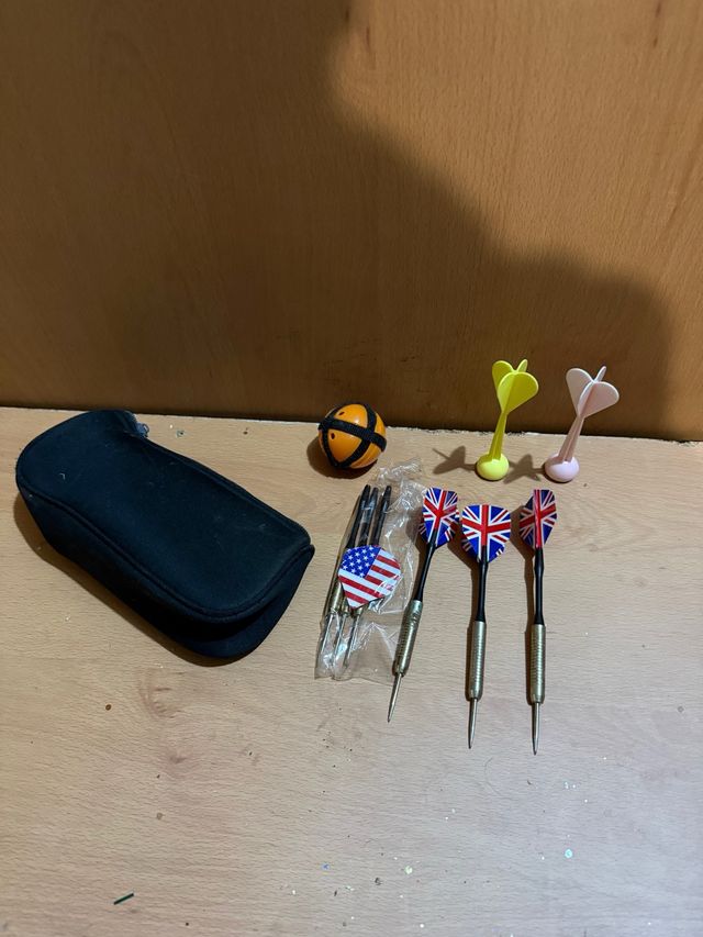 Detalles del productoSet de dardos con diferentes diseños y un estuche.
