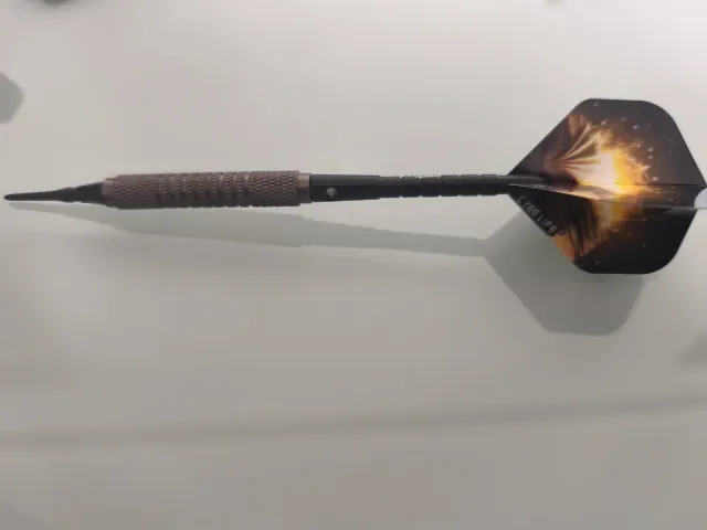 Detalles del productoSet de dardos para diana electrónica. El diseño del cuerpo del dardo es de color gris con un agarre texturizado para mayor control. Las plumas presentan un diseño llamativo con tonos naranjas y dorados.